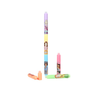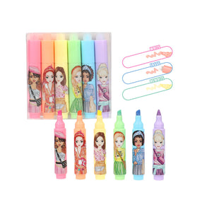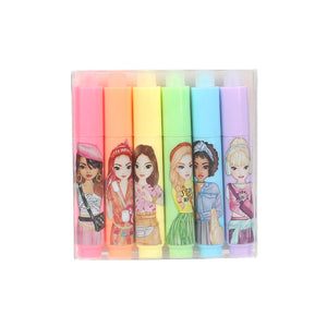Inhalt: Die Mini-Highlighter von TOPModel sind im wahrsten Sinne des Wortes ein Highlight: Sie lassen sich ganz einfach mit der runden Spitze der Kappe wieder wegradieren. 6 verschiedene Farben: Rosa, Orange, Gelb, Blau, Grün, Lila. Mit jeweils einem coolen TOPModel-Print auf dem Stift. Die kleinen Stifte lassen sich zusammenstecken.