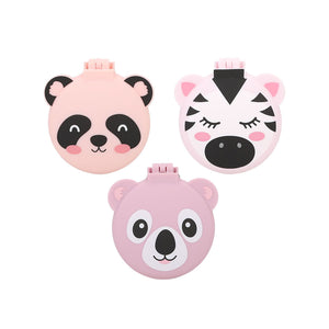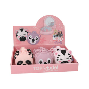 Contenuto: 1 spazzola pieghevole. Simpatiche spazzole con cerniera per animali in tre diversi design: in viola con il viso e le orecchie di un orso, in albicocca con il viso e le orecchie di un panda e in rosa con il viso e le orecchie di una zebra. Con uno specchio all'interno e una superficie gommata all'esterno, per un look fresco e meravigliosamente morbido al tatto.