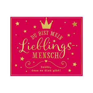 Inhalt: 1 Soundbox. Mit Motivdruck: Du bist mein Lieblingsmensch - Schön, dass es dich gibt!. Klappt man die Box auf ertönt Musik mit dem Song: Lieblingsmensch. In der Box liegt ein passend gestalteter Umschlag für Geld oder Gutscheine. Grösse: 9,5x11,2x3,5cm.